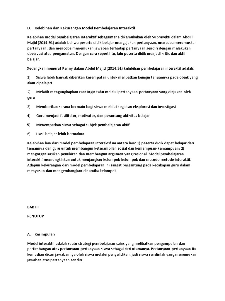 Adapun kekurangan-kekurangan dalam model pembelajaran direct instruction adalah sebagai berikut. Menurut Suyadi 2013 kelebihan dan kekurangan pembelajaran aktif antara lain yaitu sebagai berikut. Kelebihan Kelebihan atau keunggulan strategi pembelajaran aktif adalah.